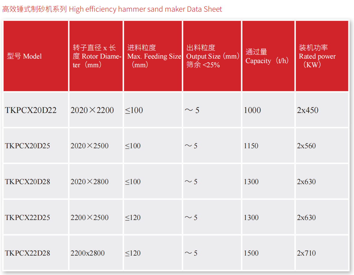 The hammer is heavy, crushing ratio is large, and one crushing into sand rate is high.