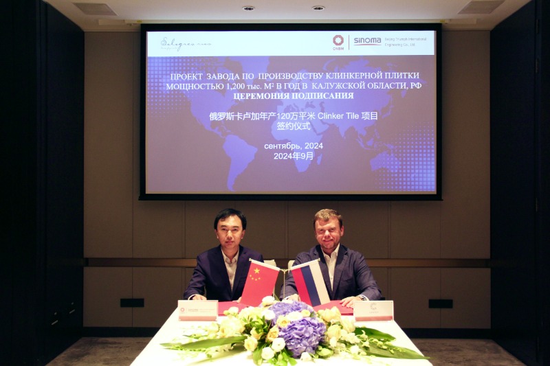 金秋送爽,喜迎華誕。9月27日,北京凱盛建材工程有限公司與俄羅斯Tochka Center集團簽訂俄羅斯年產(chǎn)120萬平米陶板項目EPS總承包合同和6000TPD熟料水泥項目EPC框架協(xié)議。北京凱盛黨總支書記、董事長李明與Tochka Center集團董事長Vladislav Melnikov代表雙方簽約。