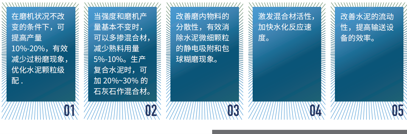 Under the premise of ensuring that the basic properties of cement remain unchanged, it can significantly improve the dispersibility of cement, increase cement strength or increase the amount of admixtures, and reduce cement costs.